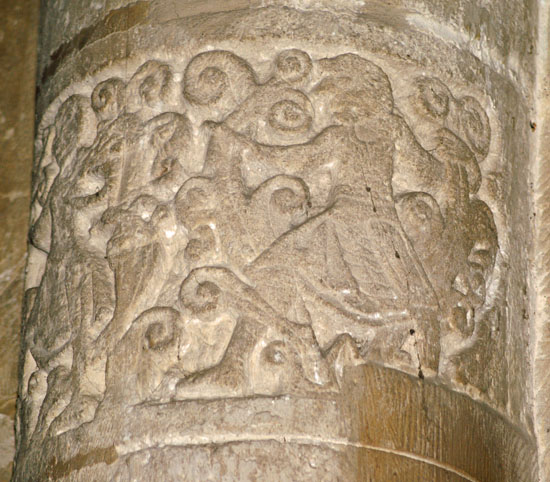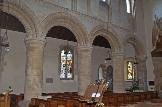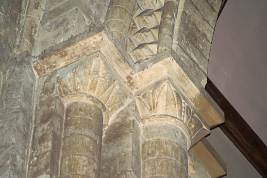at the intersections of the arches (right). There are few better Norman arcades in the country.