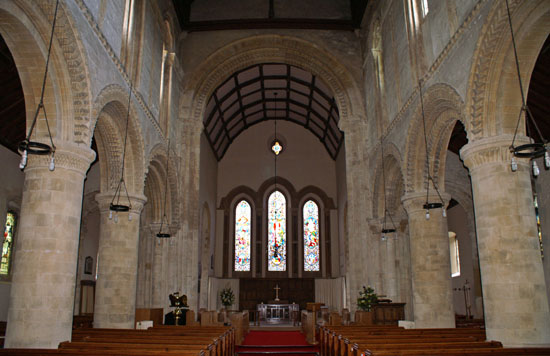 Looking east. The Norman arcades stretch to left and right. The massive Norman chancel arch soars upwards to support a tower that no longer exists.