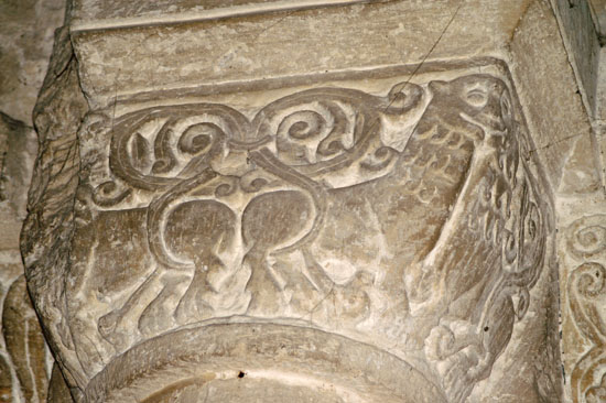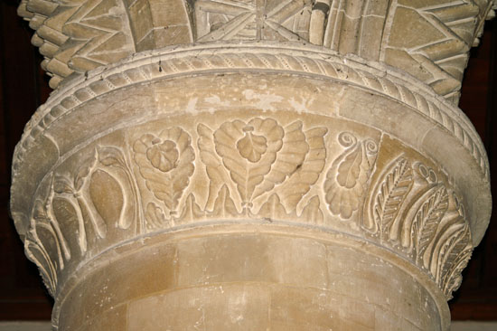 Despite the fine lions capital the rest of the capitals in this church are variations on foliage designs (left) and scallops (right).