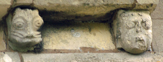 Left: This carved head is mounted on the wall of the south side of the church. I am not sure from whence it came, but is very clearly of Norman - or earlier - origin.
