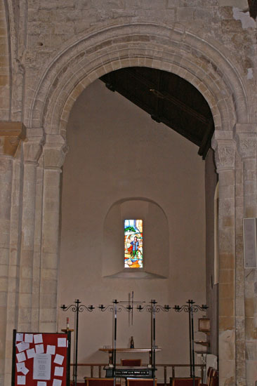 The Norman arch leading to the south chapel. It is much simpler than its counterpart on the north side.
