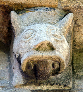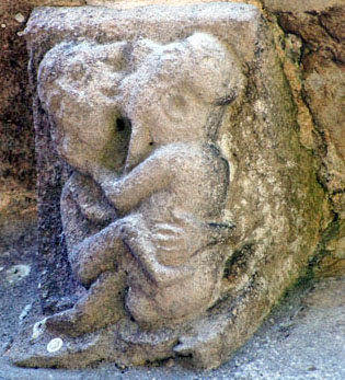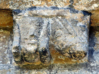 Having whetted your appetites earlier, let’s get the Naughty Norman carvings out of the way first - and do try to contain your excitement! Left: The copulating couple. I have to say I have never seen anything quite as explicit as this. Maybe they are not in flagrante delicto at all. Maybe the Norman mason thought he would leave it all to the eye of the beholder. “Obscene? Nah, mate. Can you see any genitals? Just ‘aving a nice cuddle, ain’t they?. You got a dirty mind.” Well all I can say is that if the couple are not actually - let’s be grown up about this and stop sounding like biology teachers - ”having it off” they very soon will be or else that’s going to be two very frustrated people! Centre: The sheela-na-gig. I have to admit I am rubbish at spotting things like this whereas others of my acquaintance see carved genitals wherever they go. I should get out more perhaps. This is a pretty large vulva (I think we’ll stick with the biological terminology for this subject,,,) and a hand is holding it on the right hand side as we face it. Just to the left is - ahem - what is assumed to be a “clitoral hood”. And to think we children of the sixties has “invented sex”… Two feet are very clearly visible and the round bit above the - well, you know - is actually a head upon which a badly weathered face can be seen in certain lights. Right: This is believed to be a megaphallic carving and the poor bloke has lost most of his penis. Don’t you just love the pseudo-scientific language? “Oi, Tom Mason what be that strange creature wot you’ve carved on our lovely church? I ‘ope it’s not one of them megaphallic image or the priest’s going to be very cross with you, me boy. Wot’s more, my missus is jealous…” You can see that this is right out of the design book of the man who carved the sheela. The feet are similarly planted but the face has survived rather better. These were clearly meant as a similarly-endowed pair. Matched Mega-Genitals, in fact.