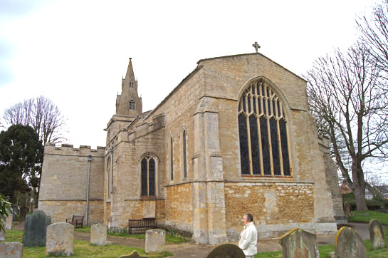 In the rather windswept Thurlby churchyard - there’s not a lot of high ground between there and the Urals! - the ashes of my partner Diana’s father, the splendidly-named Ivor Novello Lloyd, were laid to rest in the early noughties. This picture is of Diana and her mother looking at the memorial stone in 2009, not long after Diana and I became “an item” and before the narrative of the “Mooning Men Group” had become apparent to me. At the time of his interment Diana had no idea that the church was of any special architectural interest and so it is with considerable pleasure that I am able to include Thurlby Church in this website on its merits. Diana’s mother’s ashes now rest next to those of her husband having died peacefully at the ripe old age of ninety-five.
