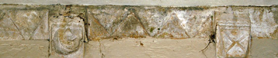 an original Norman corbel table (now, sadly, whitewashed!) and Norman string courses.