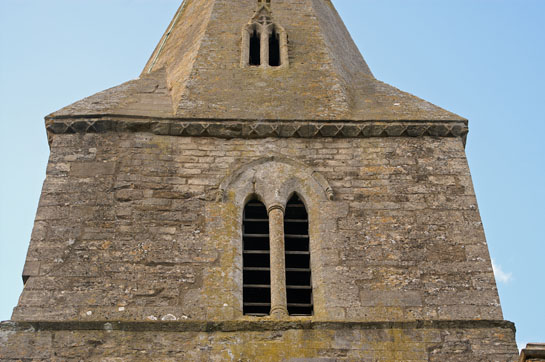 Right Above: Where the tower joins the broach spire there is a nail head decorative strip. Here too you can see signs that all has not always been well with this top section of the tower,