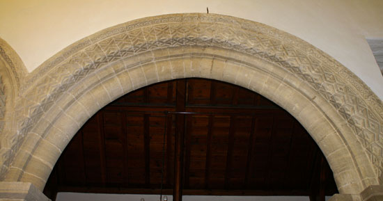The arches are decorated with Norman geometrical patterns and the capitals are plain scallop mouldings