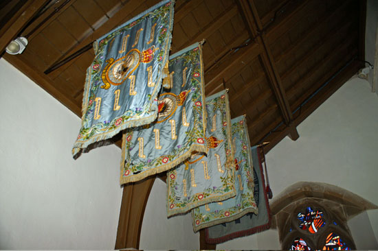 There a 5 sets of colours in all hanging in the north chapel. The nearest set, shown in close up (right) are of 20 Squadron RAF. I reproduce this information from Wikipaedia: “In the First World War 20 Squadron RFC & RAF was arguably the highest scoring and possibly most decorated British fighter squadron on the Western Front with 613 combat victories, a posthumous Victoria Cross won by Thomas Motterhead, four Distinguished Conduct Medals, and over sixty Military Crosses and Military Medals awarded to its members. Its ranks included over two score flying aces.” Wow! For more information see: http://en.wikipedia.org/wiki/No._20_Squadron_RAF