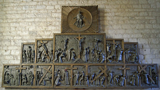Left: The south west end of the church. Note the blocked doorway. Note also the rubble base to the church. is thsi contemporary with the stonework above or it a survivor of an earlier building? Right: The south chapel houses this rather splendid crucifixion cycle, cast in fibre glass and presented by long-time worshipper Hydie Lloyd in 1968. This is probably the best “art” to be seen in this church and it is uplifting to know that our own generations also have positive contributions to make to our churches. Just don’t talk to me about the Victorians though….:-)