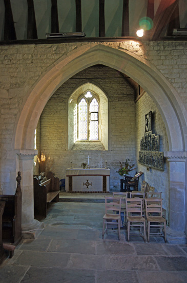 The chancel arch. Note the rather bodged apex that suggests changes have occurred - or it might just have been repairs.