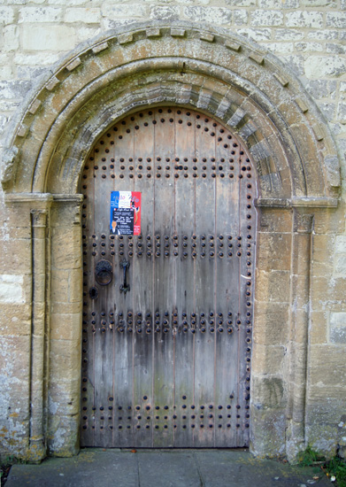 It is believed to date from about 1195 which is within the Transitional period of architecture. This date is supported by the Romanesque north door which has the more restrained semi-circular orders of decoration typical of the period. Less typical, however, are the two badly-weathered but still distinguishable large grotesque label stops at the end of the outer order of decoration.
