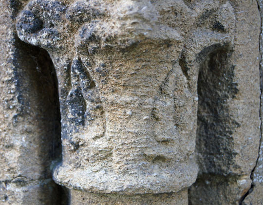 The two north door capitals. The eastern one (left) has suffered grievously from weathering but the western one (right) has fared rather better.