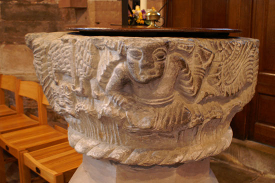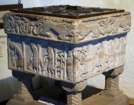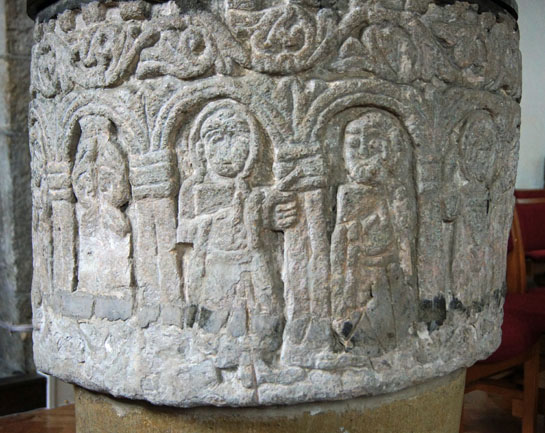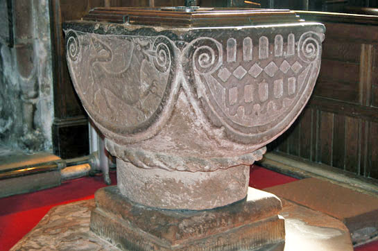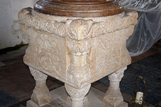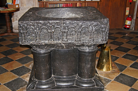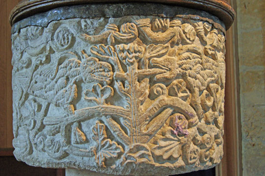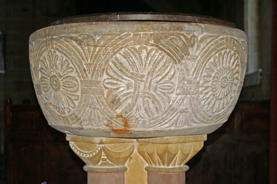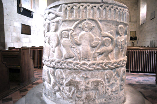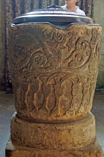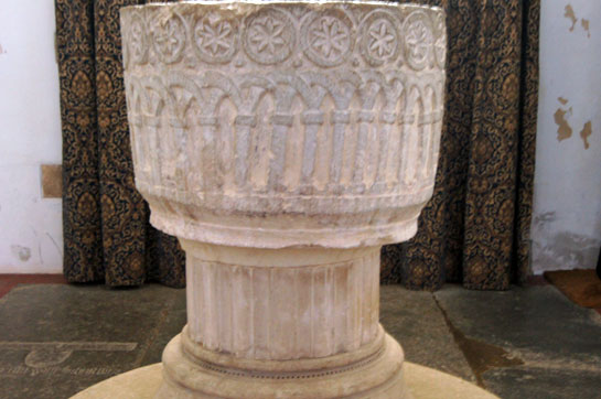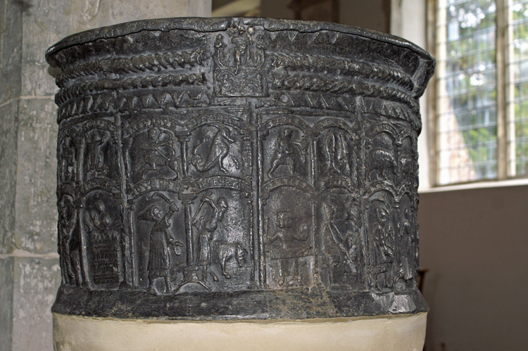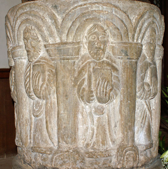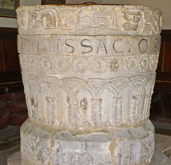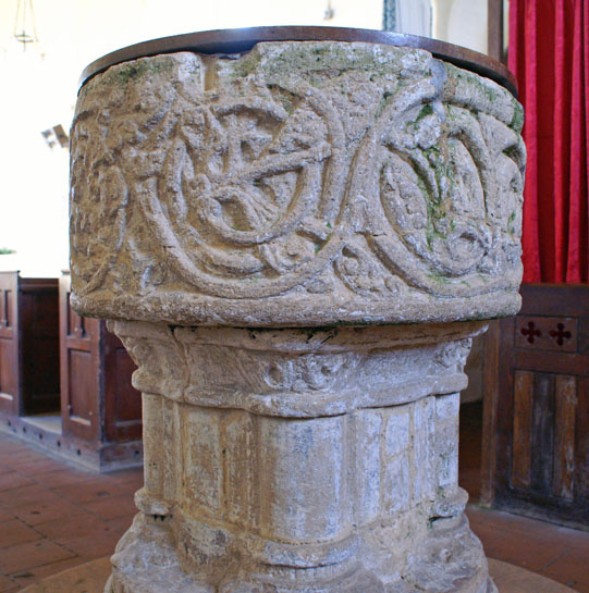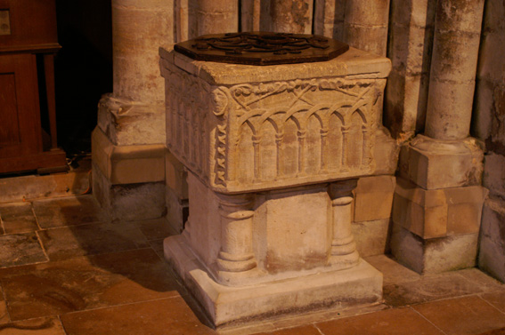 This is one of the pages which I am going to dedicate to aspects of architecture that are amongst my favourites. I feel that seeing pictures side-by-side in this way will create more immediate awareness of the diversity that there is in English churches. Diana and I will travel some way to see a Norman font. There are many on this website, with many more to come, but rarely if ever can a visitor dismiss one as “just another Norman font”. I have to sound a note of caution about the word “Norman”, however. Some originate quite late in the Norman period and the exact dates are invariably speculative. This means that some may well have been made in the Transitional period (around 1175-1200) where Romanesque and early Gothic styles were overlapping. Oakham is a good example. If a font appears on this page, therefore, it is because the font is clearly Norman in style and is definitely not Saxon or Gothic.