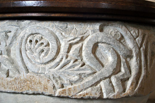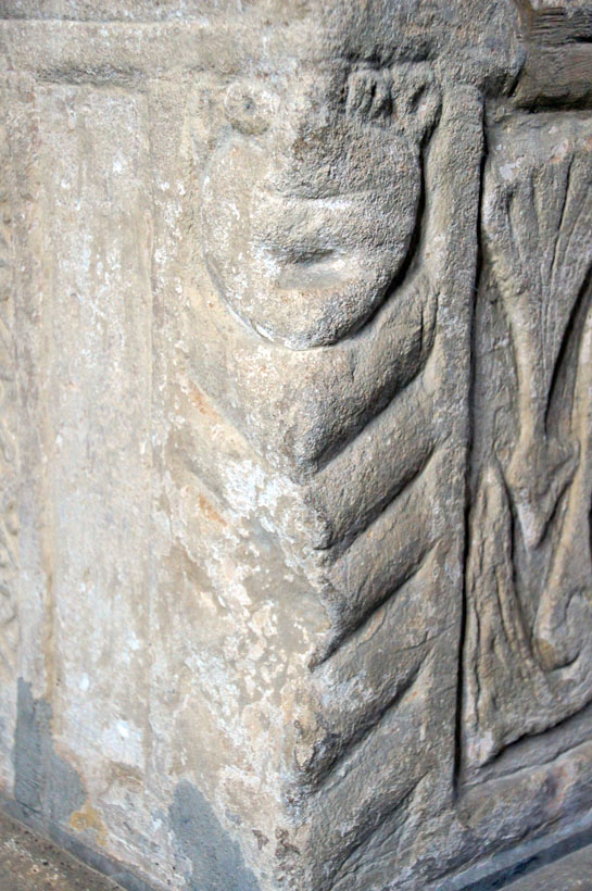 Left: This side of the font shows the strongest signs of damage. Here too we see the poverty of the carver’s techniques most exposed. Right: The final part of the font shows little improvement!