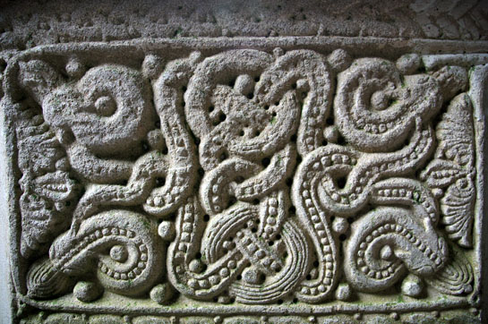 Top Left: One of the sides has this fine carving of two intertwined monsters.